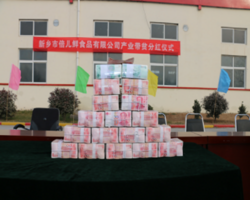 封丘县王村乡 39 个行政村534户建档立卡贫困户入股倍儿鲜食品只有几个月时间,并没有满一年,但倍儿鲜依然坚持要开这个会,要分红。马上要春节了,不能让一个贫困户掉队,要让每个家庭都过上富足、温暖的新年。