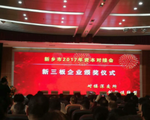 11月8日,新乡市2017年资本对接会百家四板企业集中授牌及签约仪式举行。市领导张国伟、薄学斌、刘尚进、周世杰出席签约仪式。
