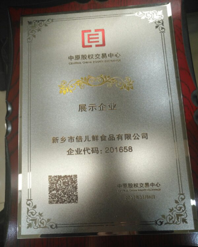 新乡市倍儿鲜食品有限公司获邀参加并被授予“中原交易中心展示企业”。