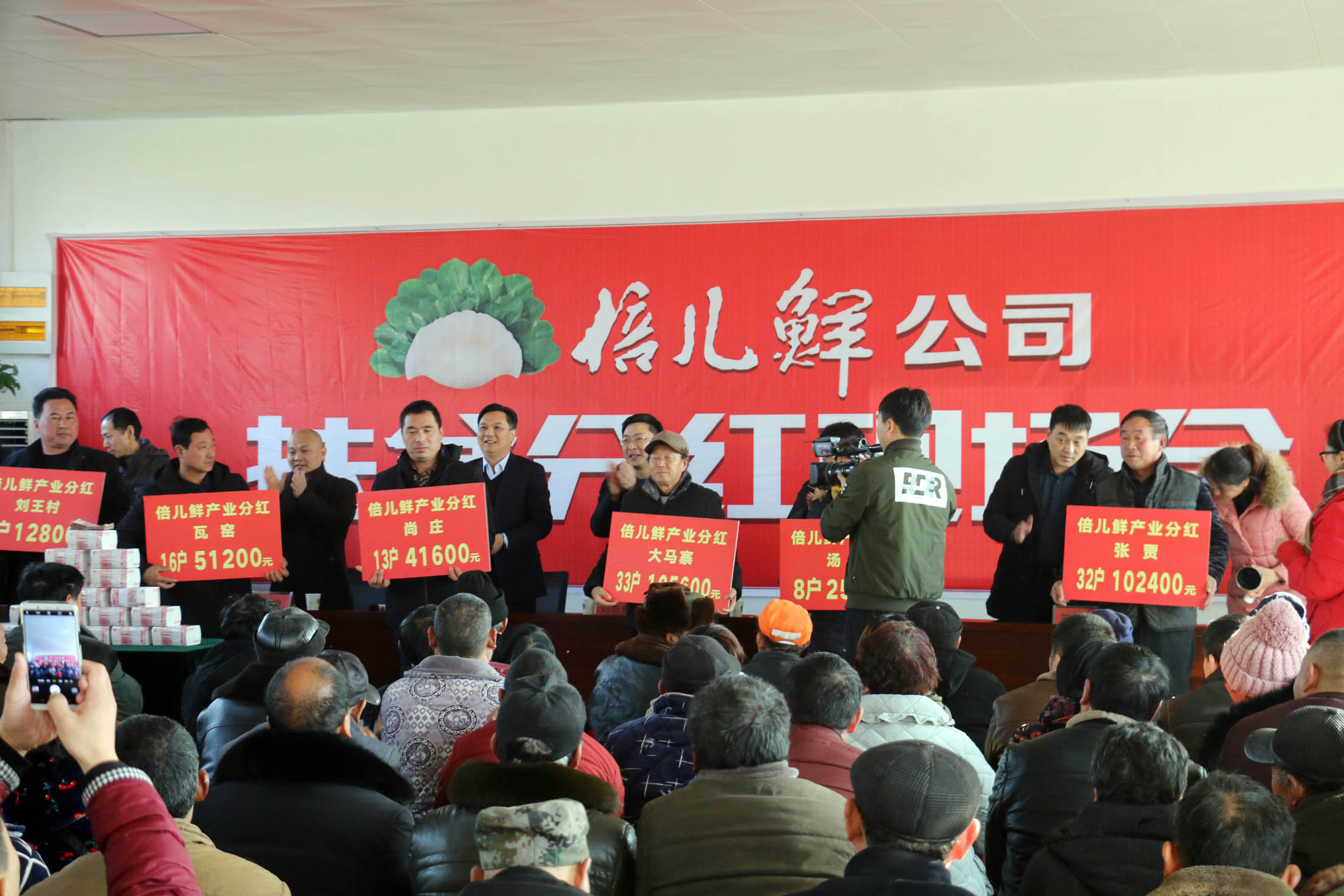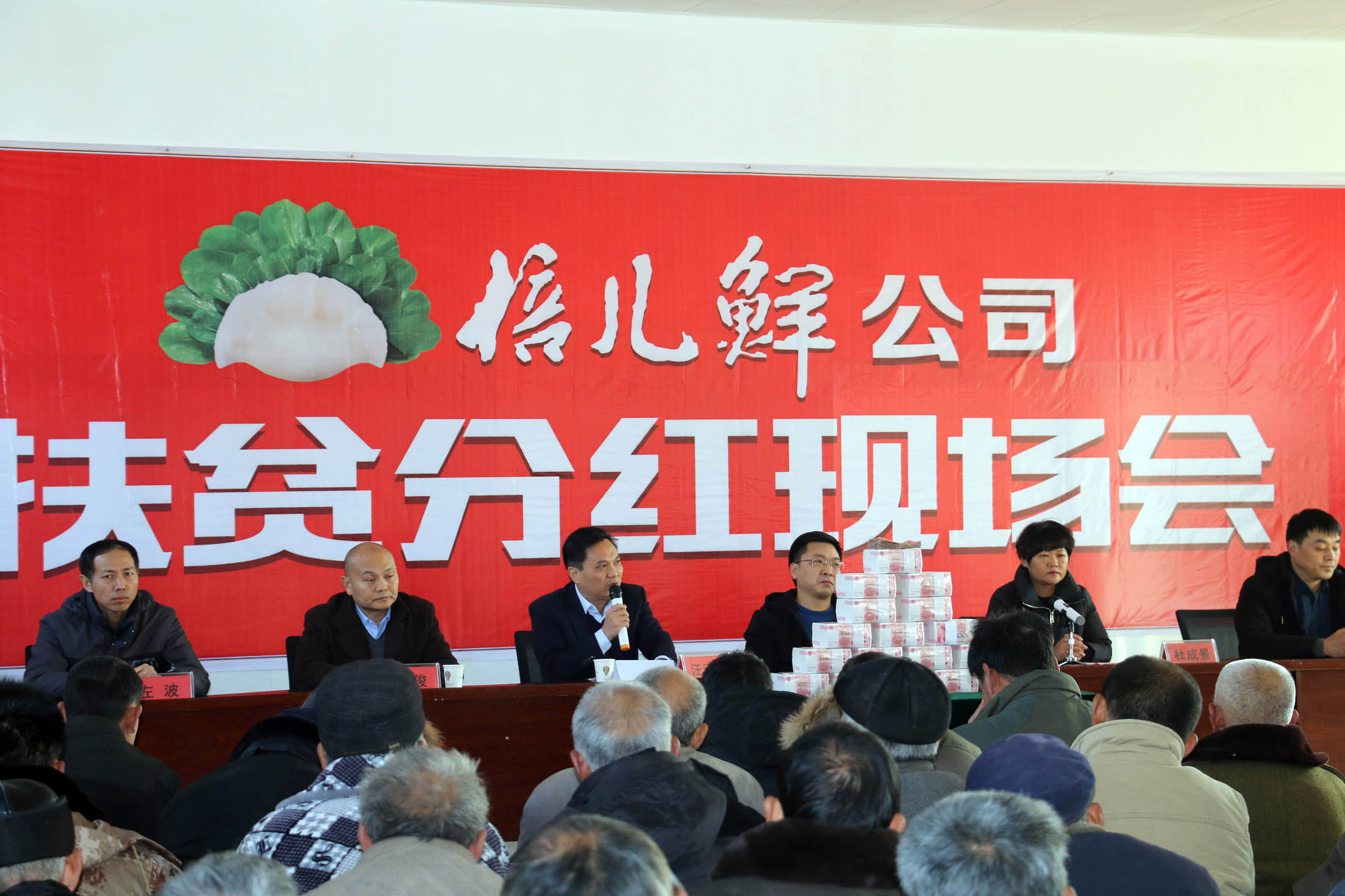 12月28日下午,在倍儿鲜食品新乡生产基地内,“倍儿鲜公司扶贫分红现场会”隆重举行,封丘县委书记刘志勇带领相关领导亲临现场予以见证,倍儿鲜食品董事长汪运勇,总经理马俊及公司股东参加仪式。